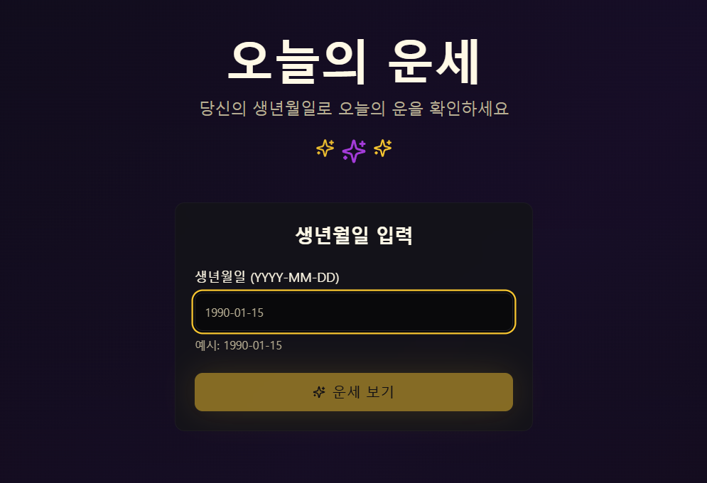 생년월일만 넣으면 오늘 운세를 AI가 알려줍니다. (단, 운세는 운세일 뿐!)